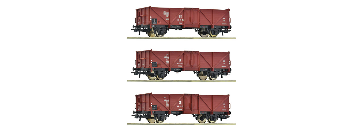 Roco 6600146 H0 3-tlg. Set: Offene Güterwagen, DR